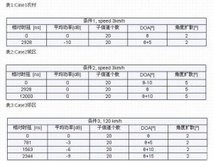 1)多天線解調測試(靜態測試):在不同的來波角度(DOA)下測試接收性能。各條徑存在一定的角度擴展,各條徑分別來自不同的角度。驗證在該傳播環境下接收機的解調性能。傳播環境如表1-表3所示。