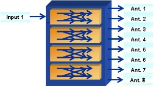 思博倫SR5500M在2007年底推出之時就考慮到TD-SCDMA智能天線的商用測試,即模塊化設計。如圖1所示,4臺SR5500M既可以供不同地點的不同團隊測試,比如測試單天線性能等,也可以組合成系統,供同一地點的多個團隊測試單天線性能,或供同一團隊測試8天線性能,極大的提高了設備利用率: