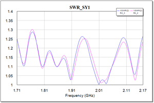 如圖2所示,為振動(dòng)試驗(yàn)前后天線電壓駐波比性能穩(wěn)定性比較,左圖的天線在振動(dòng)試驗(yàn)前后駐波比基本沒(méi)有變化曲線吻合很好,而右圖的天線在振動(dòng)試驗(yàn)后雖然駐波比仍然合格(VSWR<1.5),但試驗(yàn)前后駐波比曲線偏差較大,可以認(rèn)為該天線穩(wěn)定性較差。